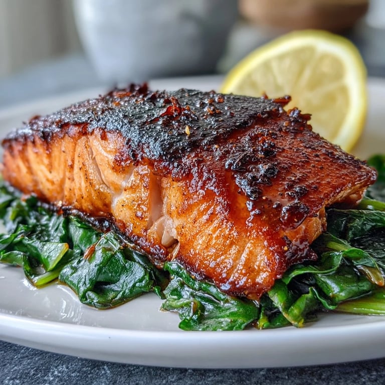 This dish feels complete on its own, but I sometimes serve it over a scoop of quinoa or with a slice of crusty bread to soak up the garlicky oil from the greens. A crisp white wine like Sauvignon Blanc or a dry rosé complements the salmon without overpowering it, though sparkling water with a twist of lemon works just as well if you're keeping it simple. For a little extra richness, I'll occasionally dollop a spoonful of Greek yogurt mixed with fresh dill on the side, it adds creaminess and a bright herbal note that ties everything together.