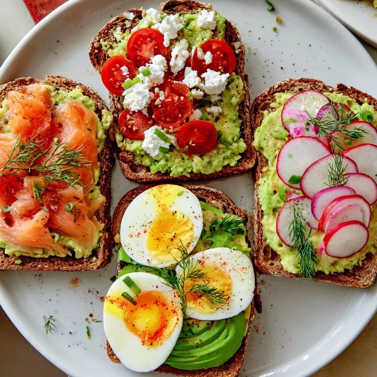 Save A vibrant collection of avocado toast variations, perfect for quick snacks, light lunches, or stylish starters.