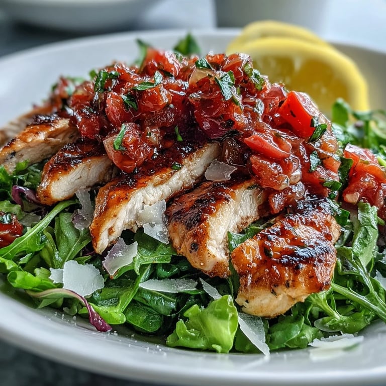 Save This Grilled Bruschetta Chicken Salad is a vibrant and fresh dish featuring juicy grilled chicken, a zesty tomato-basil topping, and crisp mixed greens. It is the perfect choice for a light lunch or a summery dinner that brings the flavors of Italy to your table in just 35 minutes.