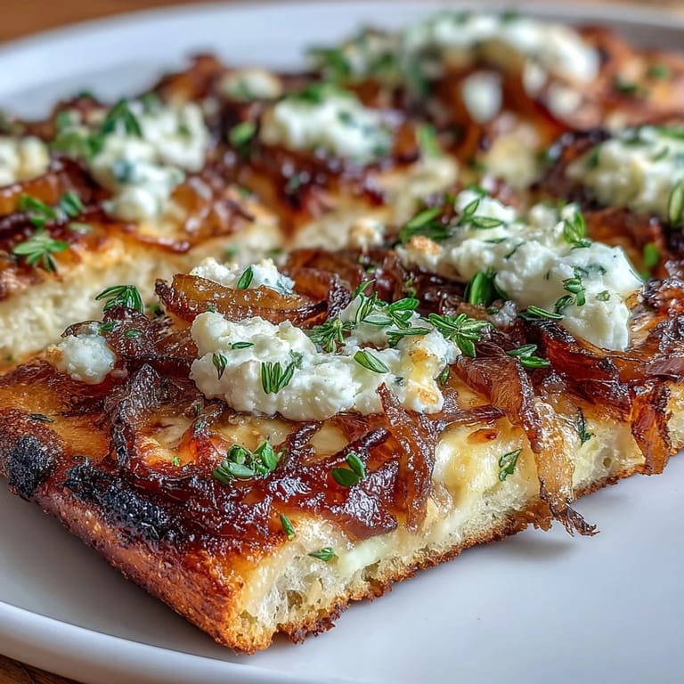 Save There's something about the smell of onions slowly turning golden in a hot skillet that stops you mid-conversation. Years ago, I had a friend who swore by caramelized onions on everything, and I'd roll my eyes until one evening she made this flatbread. The moment I bit into that crisp crust layered with sweet, jammy onions and creamy goat cheese, I understood. It's become my go-to move when I want to impress without the stress.
