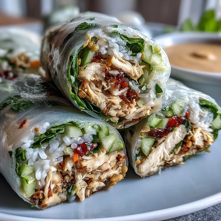 Save There's something about the sound of rice paper hitting warm water that signals the start of something fresh and intentional. My neighbor taught me these spring rolls on a humid afternoon when she brought over a stack of rice paper wrappers and said, "Trust me, once you get the hang of rolling, you'll make these constantly." She was right. What started as a careful, slightly clumsy process became almost meditative—the layers of crisp vegetables, tender chicken, and fragrant herbs coming together with each fold. Now I make them whenever I want to feel like I'm doing something a little bit special in the kitchen without spending hours there.
