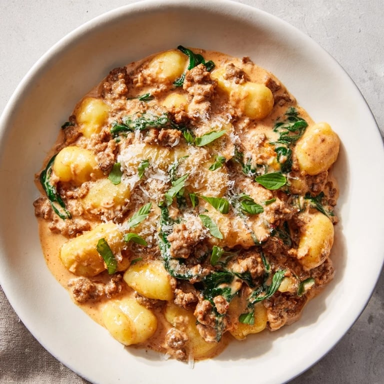 Save A comforting, rich weeknight dinner featuring pillowy gnocchi, savory Italian sausage, and a velvety tomato-cream sauce.