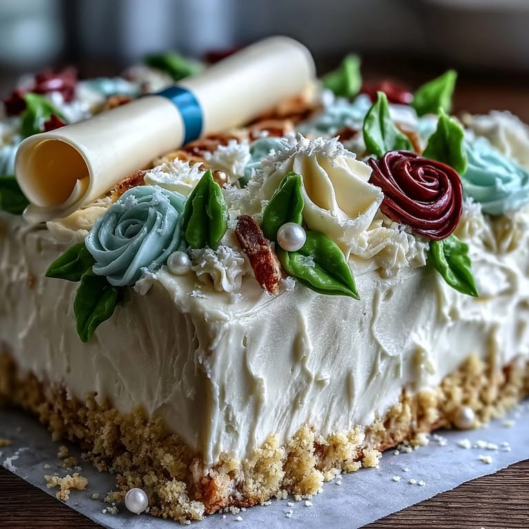 Save Celebrate your graduate with a stunning and delicious Graduation Sheet Cake featuring luscious buttercream roses and an edible diploma. This festive dessert not only pleases a crowd but also adds a personal touch to honor achievements with style and sweetness. Perfect for parties, the vibrant colors and intricate decorations make this cake a centerpiece guaranteed to impress.