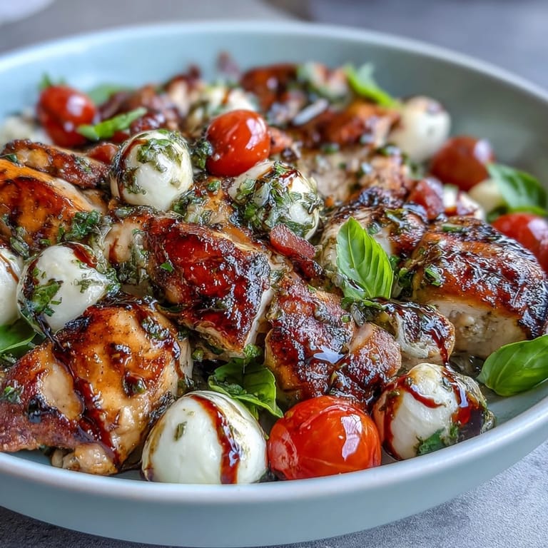 The thing I've learned about this bowl is that the temperature difference is what makes it work. The chicken comes hot off the grill, the mozzarella is cool and slightly creamy, the greens are crisp and cold, and somehow your mouth stays interested through the whole thing. On nights when I'm trying to impress without stressing, this contrast does most of the heavy lifting for me.
