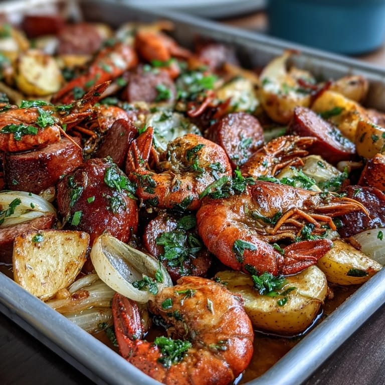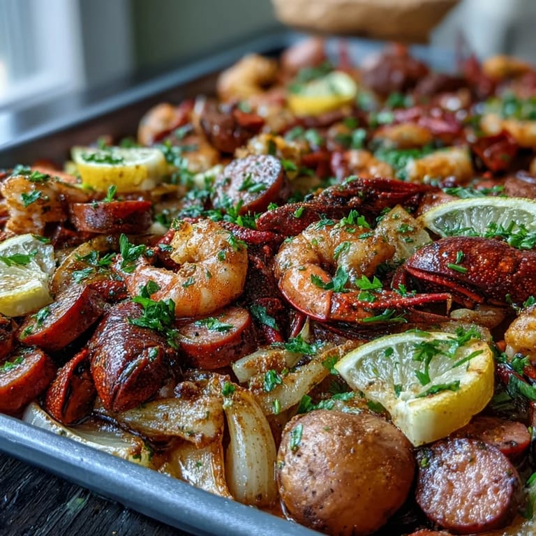 Save Imagine all the bold, spicy flavors of a traditional Louisiana crawfish boil—tender crawfish, smoky andouille sausage, sweet corn, and perfectly seasoned potatoes—but without the massive pot, propane burner, or backyard setup. This Indoor Crawfish Boil Sheet Pan Dinner brings that iconic Southern feast right into your kitchen, transforming it into an easy, weeknight-friendly meal that delivers all the excitement with none of the fuss. Whether you're craving Cajun comfort food or want to impress guests with minimal effort, this vibrant one-pan wonder is your answer.