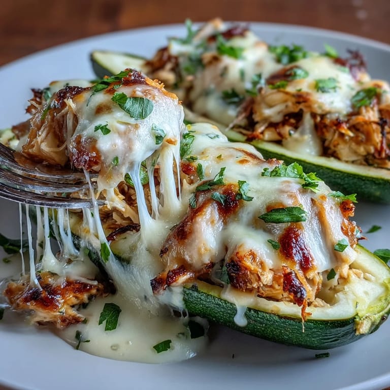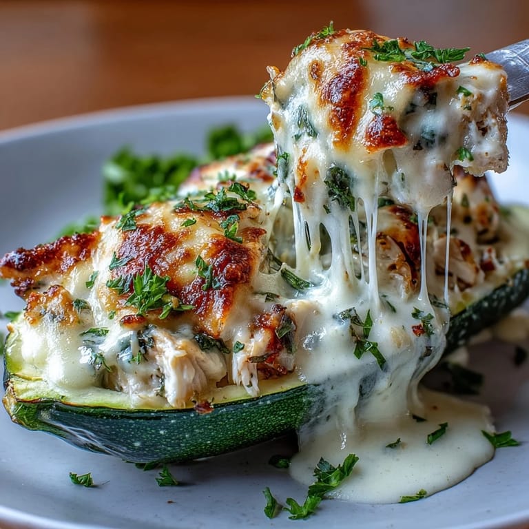 Save There's something inherently comforting about stuffed vegetables, and these Keto Creamy Garlic Chicken Zucchini Boats elevate the concept to new heights. Imagine tender zucchini cradles filled with juicy shredded chicken that's been lovingly bathed in a rich garlic cream sauce, all topped with golden, bubbling cheese. It's a low-carb dream that doesn't sacrifice an ounce of flavor or satisfaction.