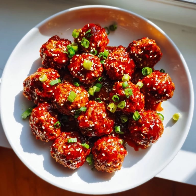 Save Juicy meatballs glazed with a sweet and spicy sriracha-honey sauce, perfect as crowd-pleasing appetizers or party bites.