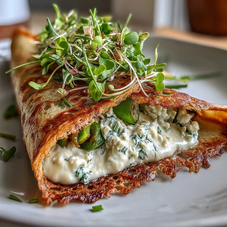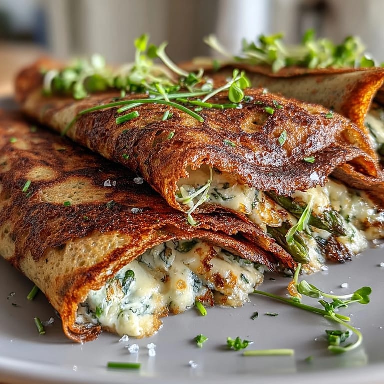 Save The first time I made these spring buckwheat crepes, the air in my kitchen was ripe with the smell of fresh-cut herbs—a sharp, grassy aroma that chased away any lingering winter blues. My windows were open, and I could hear distant laughter from the neighbor's garden, the perfect backdrop for something light and lively to sizzle in the pan. I remember how the sound of batter hitting the hot skillet was oddly satisfying, promising crepes with crisp edges and soft centers. There was no special occasion, just a craving for something that captured spring in both color and taste. These crepes became an instant mood-lifter, transforming an ordinary day into a celebration of the season.