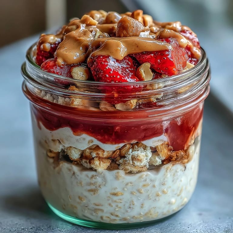 Save The beauty of overnight oats lies in their simplicity and versatility. By combining rolled oats with milk, yogurt, and chia seeds, you create a base that softens perfectly overnight, developing a creamy, pudding-like texture that's far more interesting than ordinary oatmeal. The layered approach in this recipe not only looks stunning in a glass jar but also ensures you get ribbons of peanut butter and strawberry jam throughout, making every bite a delightful surprise. Whether you're rushing out the door on a weekday or enjoying a leisurely weekend brunch, these oats deliver consistent satisfaction.
