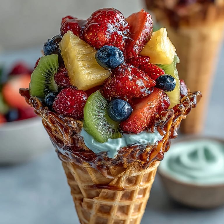 Save Picture this: a warm summer afternoon, friends gathered on the patio, and a table adorned with the most delightful treat—crisp waffle cones overflowing with a rainbow of fresh, juicy fruits. These Summer Party Fruit Cones with Yogurt Dip are more than just a dessert; they're an experience that brings joy, color, and freshness to any gathering. With no cooking required and endless customization possibilities, this recipe transforms simple ingredients into a stunning centerpiece that both kids and adults will love.