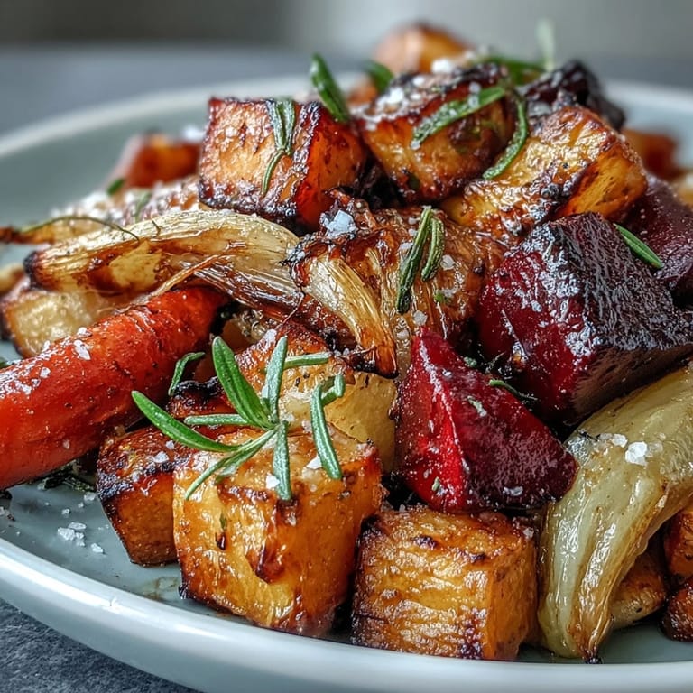 One of the best things about this recipe is how forgiving it is with whatever vegetables you find at your market or have lingering in your crisper drawer. I've made it with fennel, celeriac, regular potatoes, and even Brussels sprouts cut in half, and the formula remains the same. The key is keeping your pieces roughly similar in size and staying committed to that high heat, and everything else is just you putting your personal spin on it.